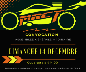 La tenue de l’Assemblée Générale du MRCT 33 aura lieu le : 📅 Samedi 14 décembre🕘 De 9h à 12h📍 Maison des associations du Teich📌 1 place Pierre Dubernet – 33470 Le Teich➡️ Salle située au 1er étage Ordre du jour : Bilan de la saison Bilan comptable Présentation et mise en place des nouveaux…